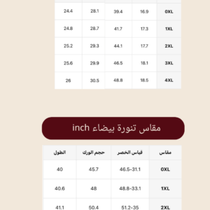 | المقاس(size) | 0XL, 1XL, XXL, 3XL, 4XL |