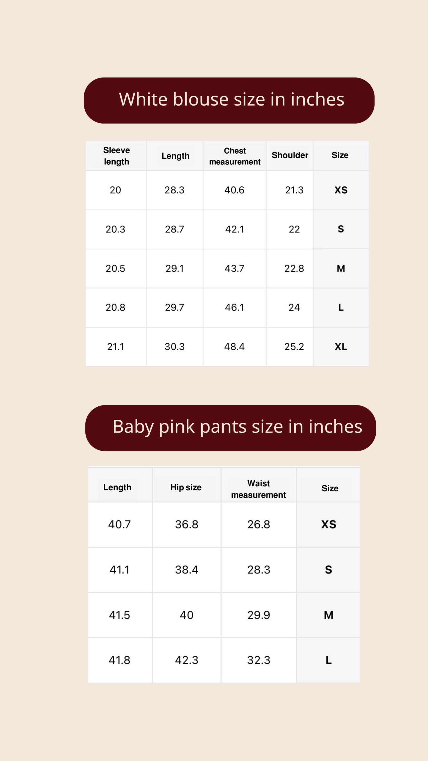| المقاس قمبص وردي (Pink shirt size ) | S, M, L, XL |