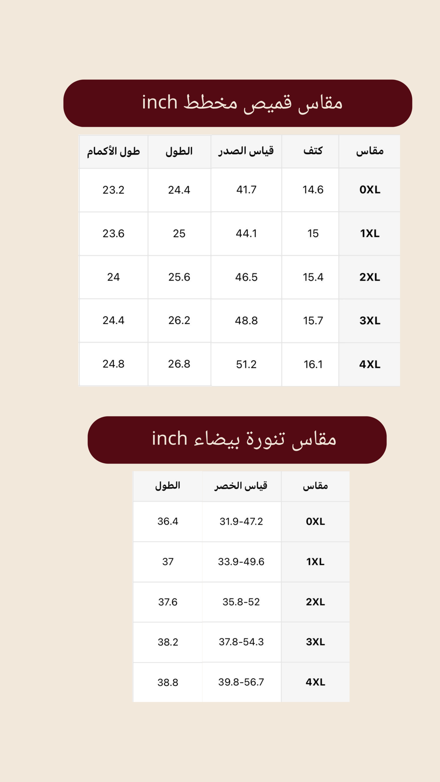 | المقاس(size) | 0XL, 1XL, 2XL, 3XL |