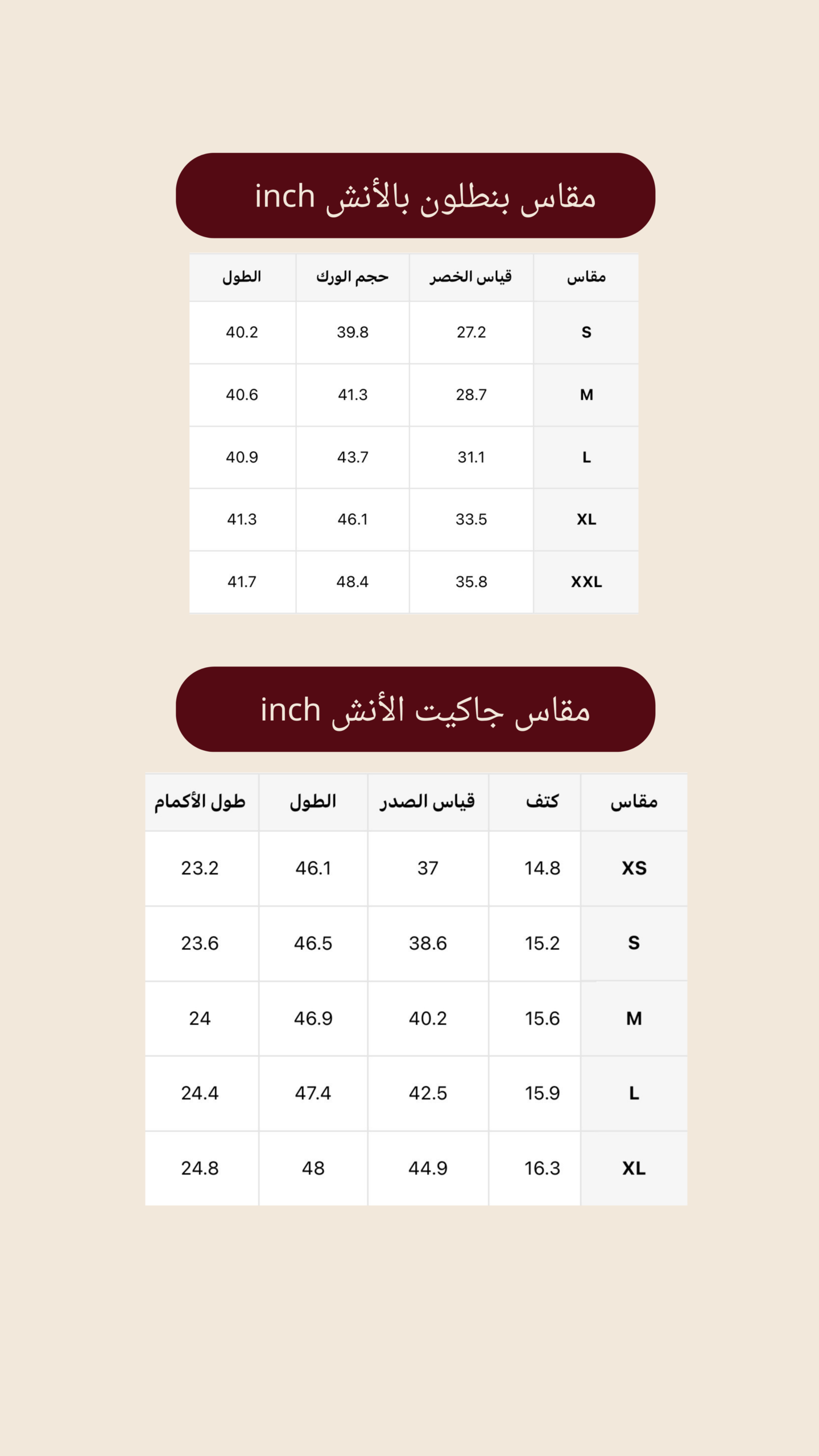 | المقاس(Size) | S, M, L, XL |