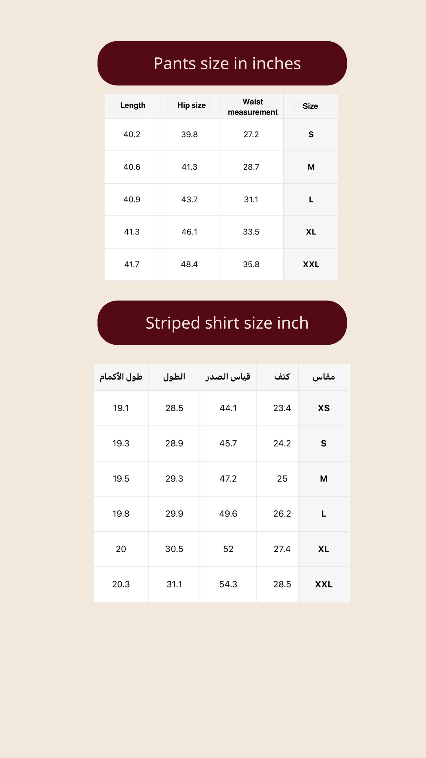 يتكوّن الطقم من قميص مخطط خفيف بلون أصفر، بنطلون بقصّة مريحة بلون بني، توب داخلي بني ناعم، وحزام متناسق يكمل الإطلالة بأسلوب أنيق ومتوازن.